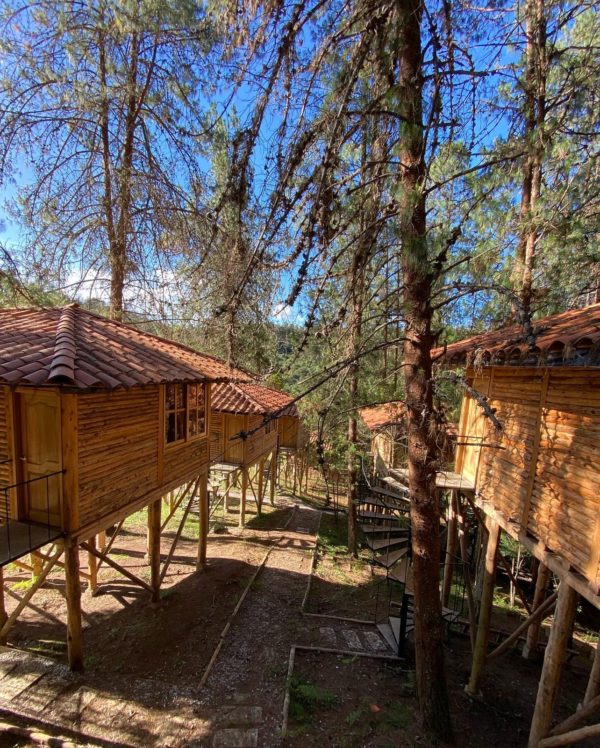 * Alojamiento en cabañas bajo los árboles